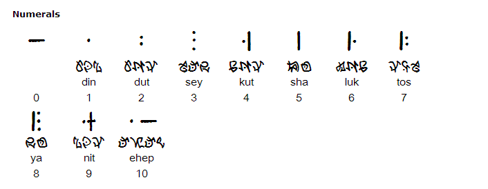 The language is written in boustrophedon: the first line is read from left to right, the second line from right to left and the third one from left to right, this continues.
